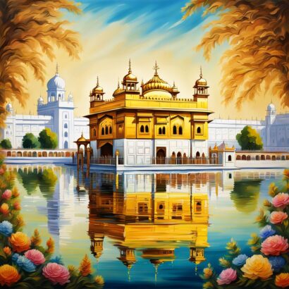An Oil Painted Golden Temple ideal for your Home and Office
